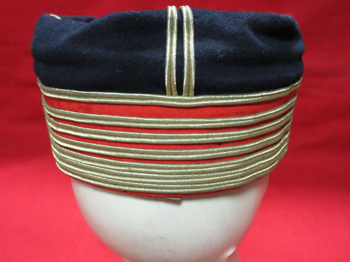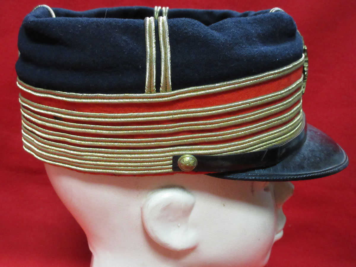 戦前警察高官大礼帽 戦前警察高官大礼帽 (hat-0056) New新着商品 戦前警察官の大礼帽です。 陸軍の金線の本数でしたら、大佐位の階級です。 赤羅紗部一部虫食い御座いますが、汗留部硬化一部剥がれ有、全体的には美~極です。 サイズ 55cm位 状態:美~極 在庫状態 在庫有り 販売価格(税込) ¥65,000 数量